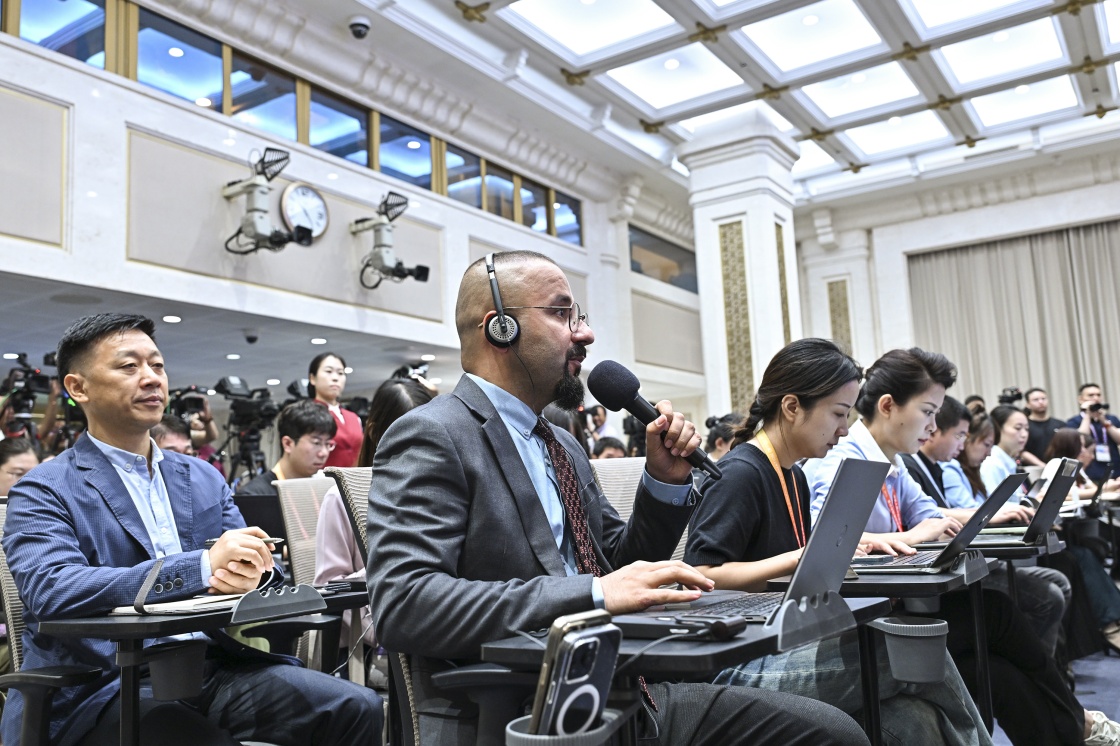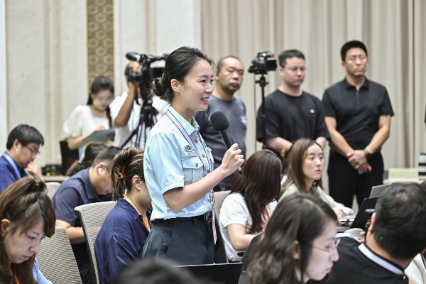 8月20日,國務(wù)院新聞辦公室在北京舉行新聞發(fā)布會(huì ),閱兵領(lǐng)導小組辦公室副主任、中央軍委聯(lián)合參謀部作戰局少將副局長(cháng)吳澤棵,中國人民解放軍中部戰區閱兵指揮機構辦公室常務(wù)副主任、政治工作部少將副主任徐貴忠介紹閱兵準備工作有關(guān)情況,并答記者問(wèn)。這是記者在現場(chǎng)提問(wèn)。